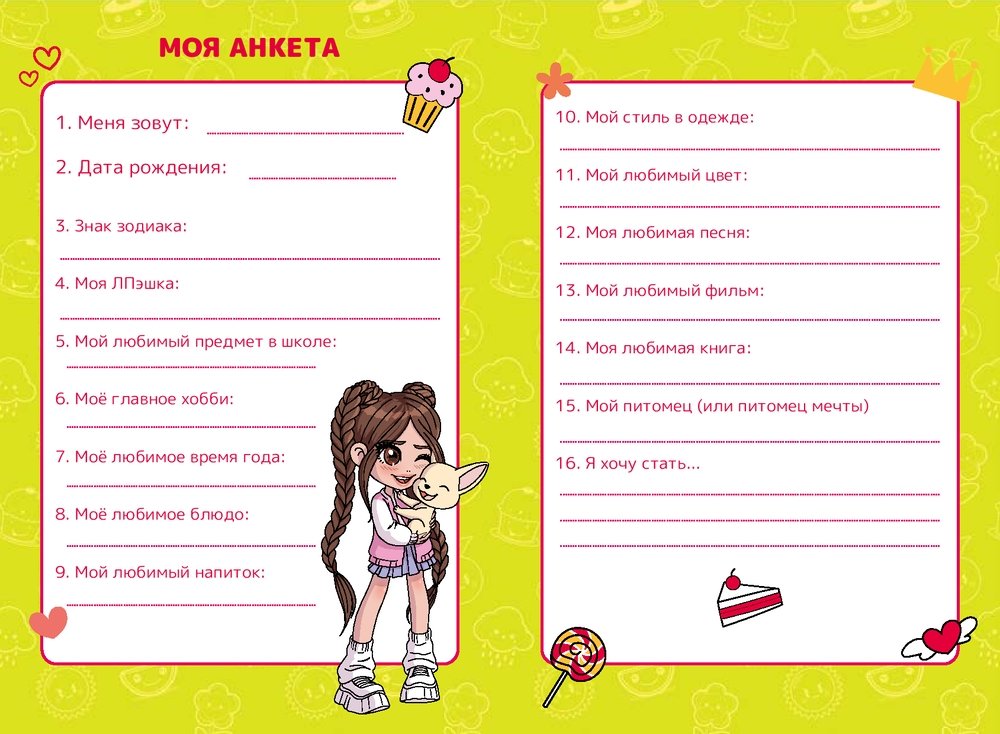 Милана Хаметова – популярная блогер, певица и начинающая актриса, участница проекта SuperHouse, номинант рейтинга Forbes "30 до 30" и просто очень классная девчонка. В этом дневнике ты найдёшь: • анкеты для тебя и твоей ЛП; • тесты про пёсиков и котиков; • задания для настоящей умки; • окрашительные наклейки; • советы от Миланы • и многое другое! Мечтай, твори и улыбайся вместе с Миланой!