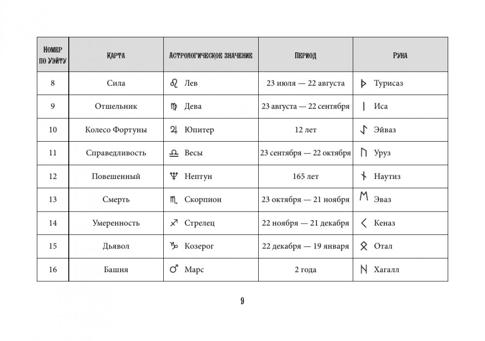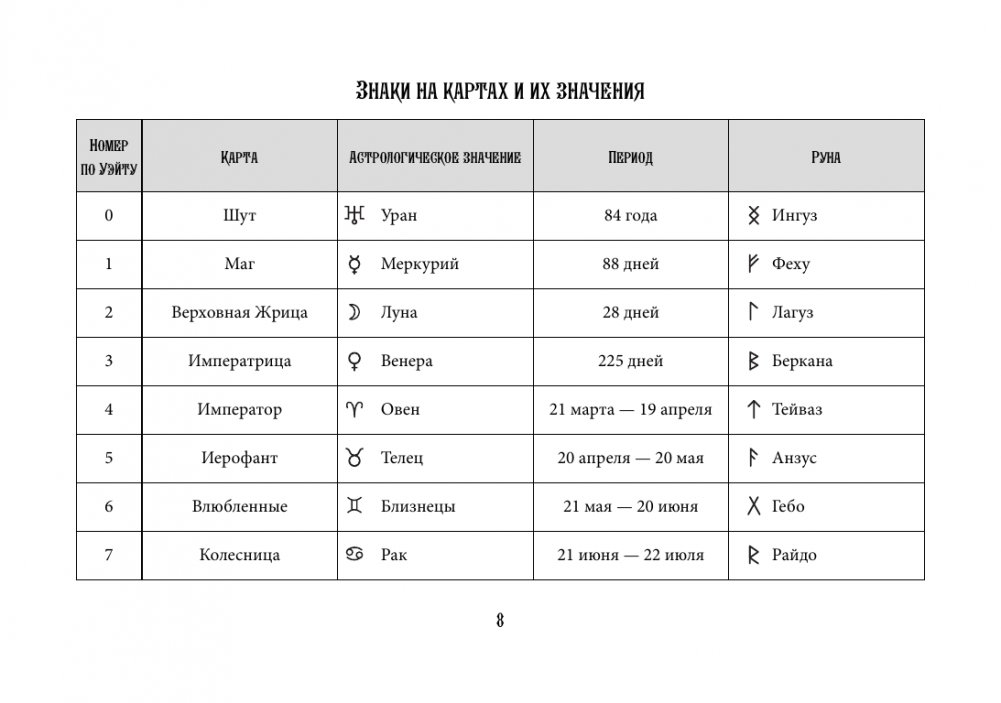 Если вы хотели обучиться гаданию на Таро, но вам сложно запоминать толкования, если вы не понимаете структуру арканов или не можете прочесть знаки — эта обучающая колода для вас. "Таро Уэйта. Эффективное обучение" — обучающее Таро нового поколения. На картах начерчены толкования, руны и астрологические знаки, которые помогут запомнить значения карт, увидеть на них больше информации и трактовать выпавшие карты точнее. Чтобы начать практиковать Таро, вам нужен только этот комплект: в книге 50 раскладов, каждый из которых вы можете разложить и сразу же трактовать. Доверяйте своим толкованиям с первого предсказания! В комплекте: колода из 78 карт с иллюстрациями Таро Уэйта с толкованиями, рунами и астрознаками на каждой карте и подробная инструкция по работе с колодой, включая дополнительные значения и 50 основных раскладов, все упаковано в подарочную коробку с картонным фиксатором (ложементом).