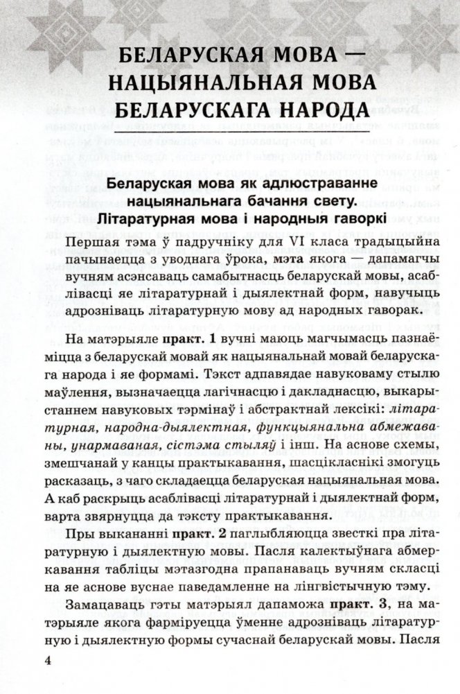 У дапаможніку змяшчаюцца метадычныя рэкамендацыі да правядзення ўрокаў розных тыпаў па беларускай мове ў 6-м класе. Прапанаваныя матэрыялы і метадычныя парады, дадзеныя ў ім, дапамогуць настаўніку паспяхова рэалізаваць асноўныя патрабаванні вучэбнай праграмы, а таксама будуць садзейнічаць фарміраванню прадметных, метапрадметных, асобасных кампетэнцый вучняў.