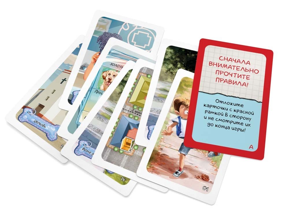 В состав настольной игры Элементарно! Для детей «Собачьи дела» входят 37 карт и правила игры.