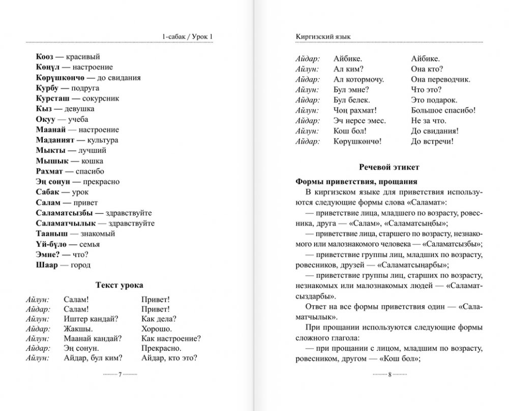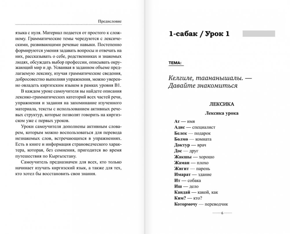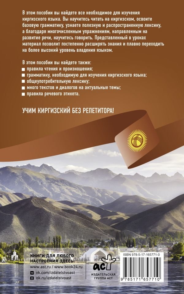 Автор этого учебного пособия — Ж. С. Хулхачиева-Байтерекова, заведующая кафедрой языков и культур стран СНГ и ближнего зарубежья ИМОиСПН МГЛУ, кандидат филологических наук, доцент с большим опытом преподавания киргизского языка. Учебное пособие охватывает базовую грамматику киргизского языка и направлено на выработку устойчивых навыков разговорной речи. Каждый урок знакомит с грамматическими особенностями языка и с общеупотребительной разговорно-бытовой лексикой, а полученные навыки вы сможете отработать в многочисленных упражнениях. Для удобства читателя задания, направленные на развитие речи, доступны по QR-кодам: это позволяет одновременно с выполнением упражнения обращаться к материалу урока. Проверить себя можно по ответам, представленным в конце пособия. Особенность методики самоучителя в том, что с первого урока можно заговорить на киргизском языке и начать его понимать, хотя и в очень ограниченном охвате грамматики и лексики. На протяжении остальных уроков этот охват знаний будет постепенно расширяться, опираясь на материал, представленный в предыдущих уроках. Пособие предназначено для всех, кто только начинает изучать киргизский язык, а также для тех, кто хотел бы восстановить свои знания.