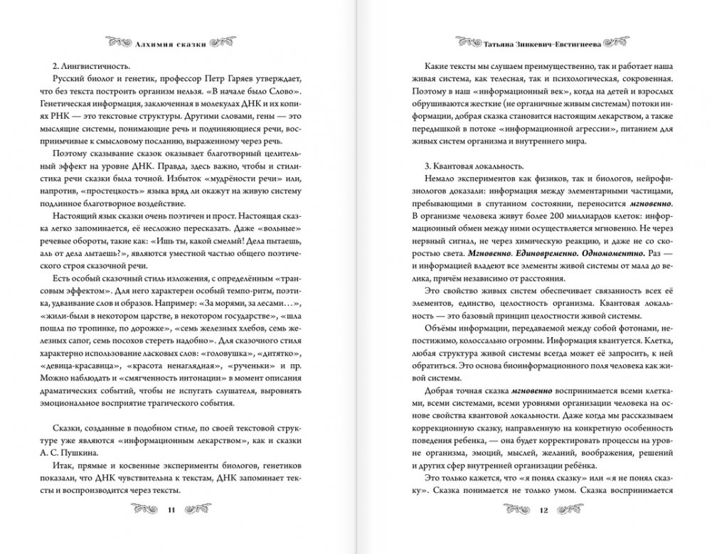 Татьяна Зинкевич-Евстигнеева — Ph.D, автор метода Комплексной сказкотерапии, президент Международного Союза сказкотерапевтов. Автор этой книги много лет исследовала сказки разных народов и сочетала это с анализом жизненных историй, что позволило установить закономерности в развитии сказочных сюжетов. Сказочные сюжеты описывают многообразие жизненных ситуаций, способы преодоления трудностей; они вмещают в себя опыт ошибок, совершенных и исправленных героями сказок. Сказка передает богатейший опыт поколений и формирует фундамент жизненной прочности. Всё сказочное наследие призвано сделать человека крепче духом. В наш "информационный" век добрая сказка становится настоящим лекарством для души человека.