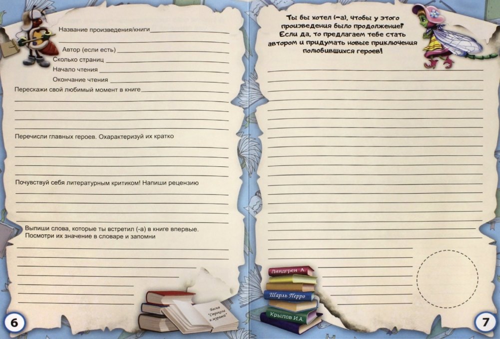 Этот дневник поможет малышу научиться анализировать прочитанные литературные произведения, характеризовать героев и давать оценку сюжетной линии. Интересные вопросы и задания научат ребёнка формулировать собственную точку зрения и разбудят в нём любовь к чтению.