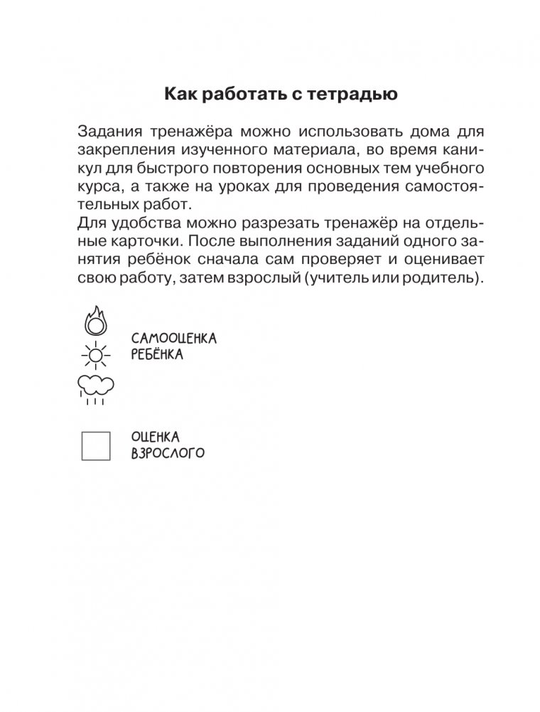Тренажёр по математике идеально подходит для учащихся и родителей, желающих помочь своим детям преодолеть трудности в освоении школьной программы, а также учителей начальной школы. Задания можно выполнять как дома, так и на уроках, что делает его универсальным инструментом для обучения. Одно из главных преимуществ нашего тренажёра — возможность разрезать его на отдельные карточки. Это позволяет детям видеть объём работы и не бояться его. Превратите обучение в увлекательное приключение с нашим тренажёром математике!
