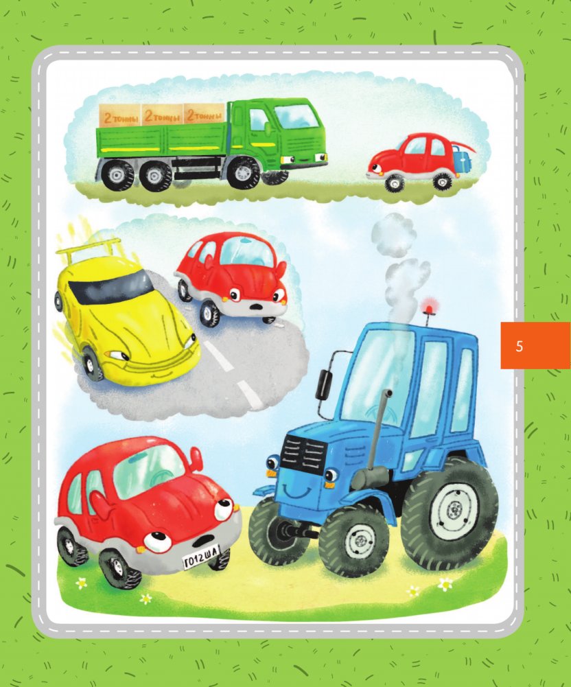 Внутри вы найдете 20 добрых рассказов о разных о машинах, кораблях и даже подъемных кранах. Каждый рассказ сопровождается яркими иллюстрациями.