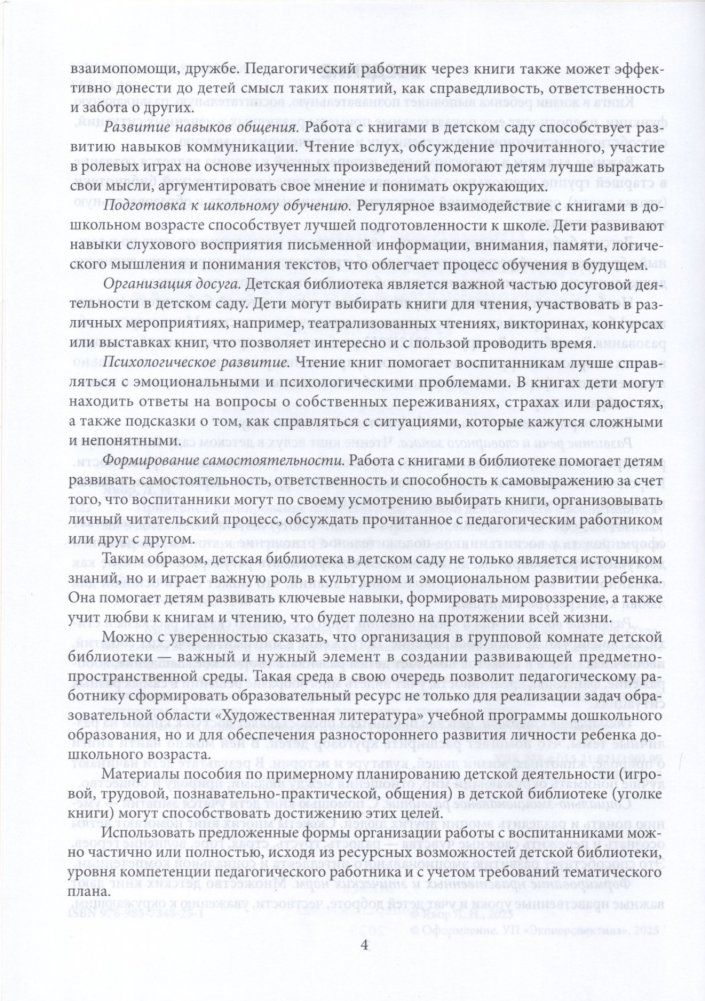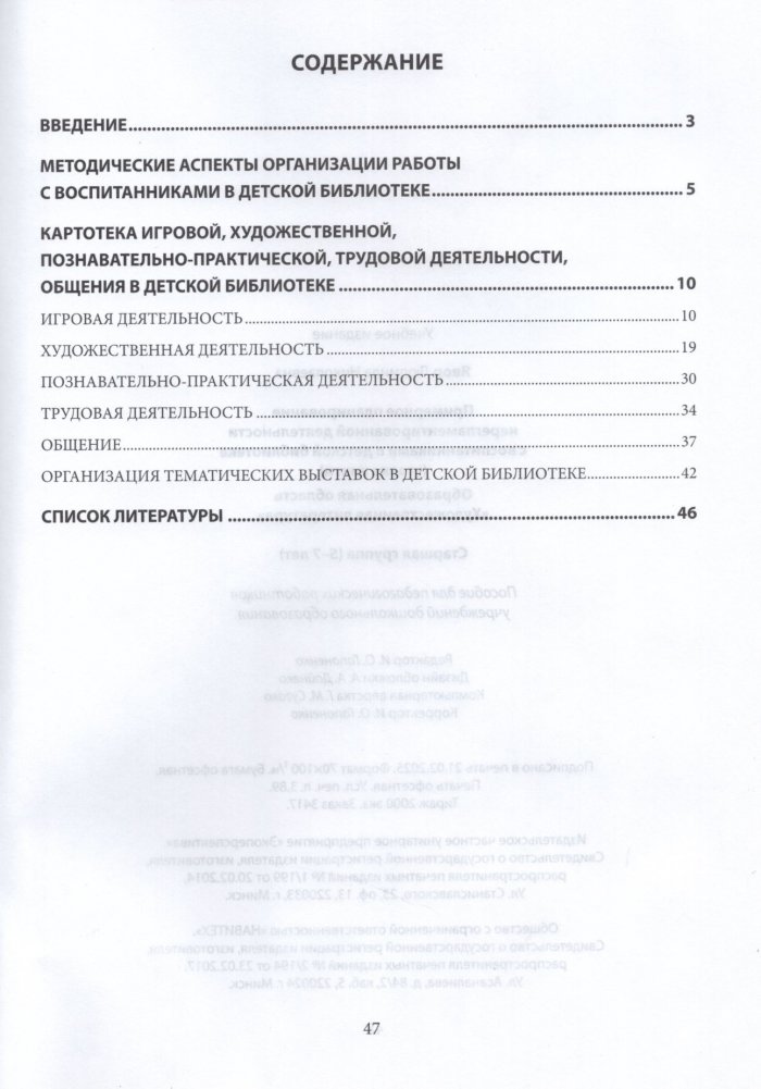 Содержание пособия направлено на реализацию задач образовавтельных областей "Художественная литература" учебной программы дошкольного образования. В пособии предложены разнообразные формы организации познавательно-практической, игровой деятельности и общения в рамках работы в детской библиотеке, которые можно использовать в старшей группе учреждения дошкольного образования с целью приобщения воспитанников к произведениям художественной литературы и фольклора, доступным их пониманию, а также миру театра.