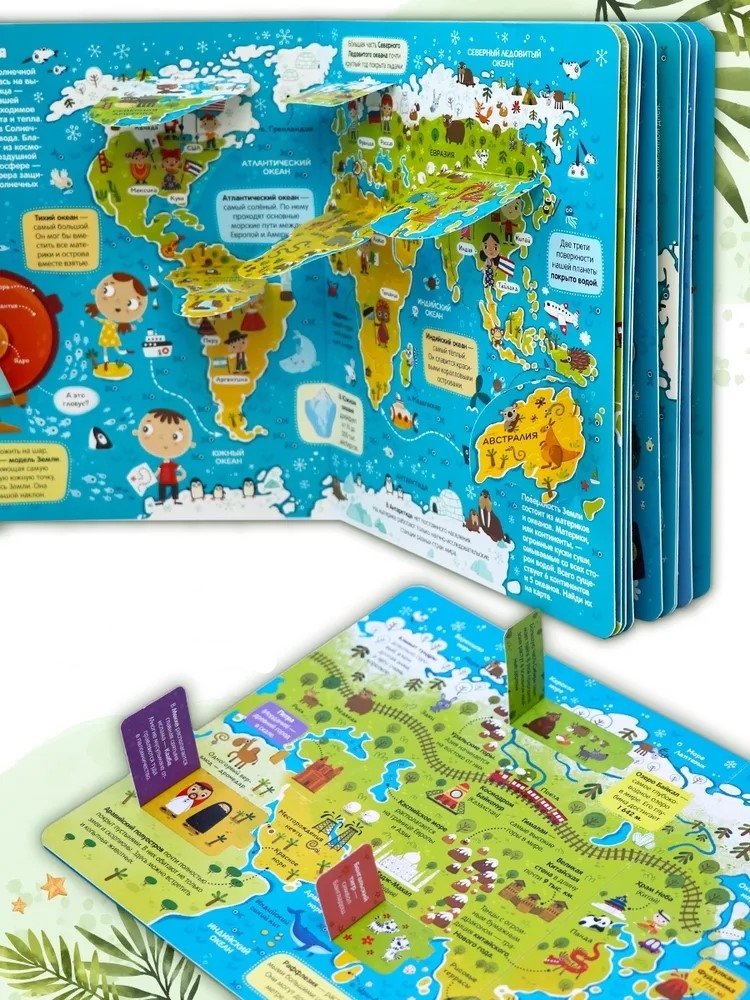 Наша планета — настоящая сокровищница Вселенной. «Атлас мира» — это путешествие по самым огпдалённым уголкам Земли. Города и страны, растения и животные, люди и достопримечательности — всё это любознательный малыш встретит на страницах книги. Красочные страницы с подробными иллюстрациями можно рассматривать часами и каждый раз находить новое! Развиваться интереснее вместе с Malamalama!