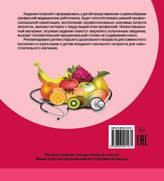 Издание позволит сформировать у детей представления о разнообразии профессий медицинских работников, будет способствовать ранней профессиональной ориентации, воспитанию профессионально значимых качеств личности, вызовет интерес к труду людей этих профессий. Иллюстрационный материал, игровые задания помогут закрепить полученные сведения, вызовут положительный эмоциональный отклик на содержание книги.