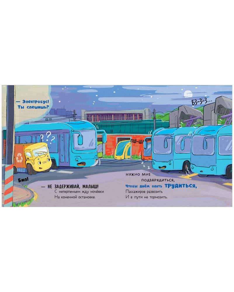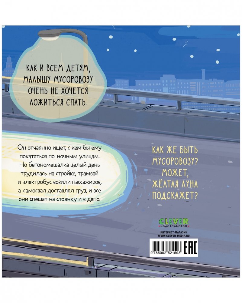 Родители знают, как трудно уложить ребенка спать, особенно если за день он получил много новых впечатлений. Сказка в стихах с красочными детальными иллюстрациями «Малыш мусоровоз не хочет спать» — незаменимый мамин помощник в создании вечернего ритуала спокойного засыпания.