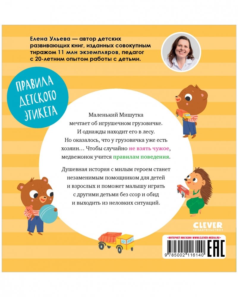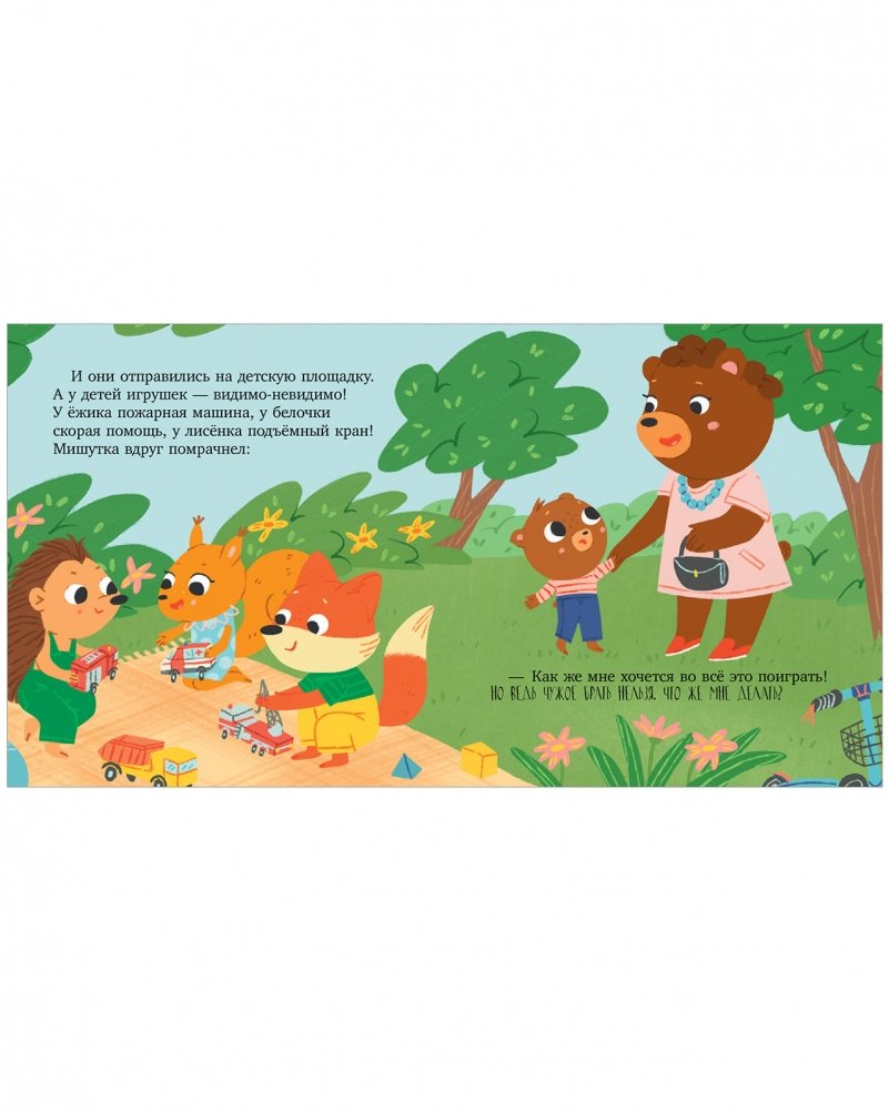 Сказка от Елены Ульевой, которая покажет малышу на примере героя — Мишутки, — как правильно делиться игрушками, спрашивать разрешения и почему не нужно брать чужие вещи.