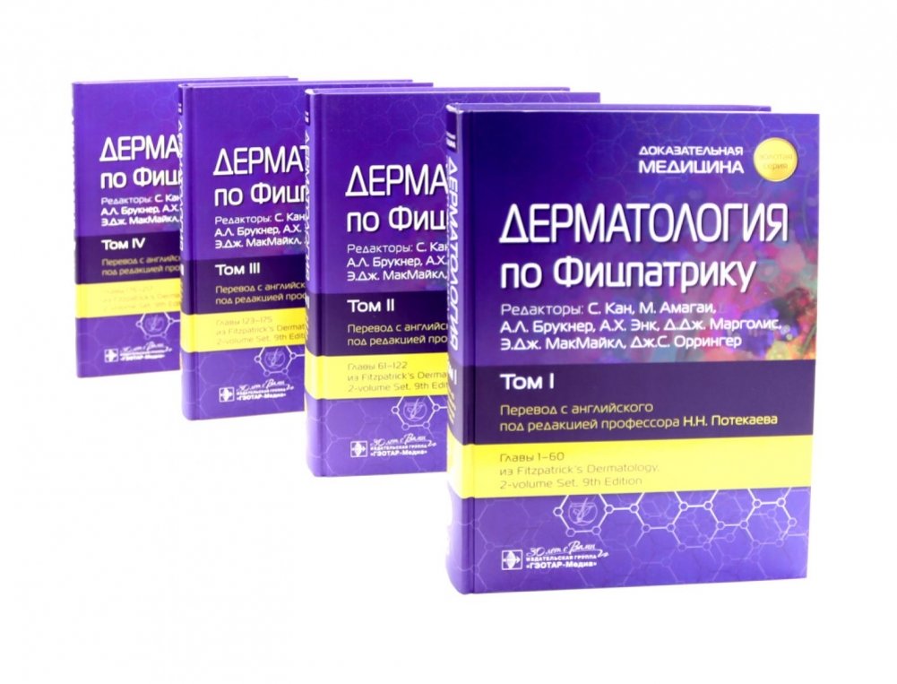 Перед вами четыре тома нового издания «Дерматологии по Фицпатрику» — перевод последней, девятой, версии полного руководства Fitzpatrick’s Dermatology, которое на протяжении десятилетий является одним из самых авторитетных и фундаментальных источников информации для специалистов по кожным заболеваниям во всем мире.