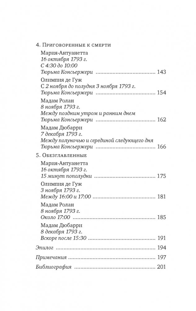 1793 год. В самом разгаре Французская революция, определившая всю дальнейшую историю Европы. Власти Республики судят четырех женщин: законодательницу общественных вкусов мадам Ролан, неутомимую защитницу прав женщин Олимпию де Гуж, расточительную бывшую фаворитку Людовика XV мадам Дюбарри и, наконец, легкомысленную королеву Марию-Антуанетту. Все они пали жертвами революции и ее излюбленного оружия — гильотины. Историк Сесиль Берли во всех подробностях воспроизводит последние дни этих влиятельных, незаурядных и очень разных женщин от ареста до приговора и последующей казни…