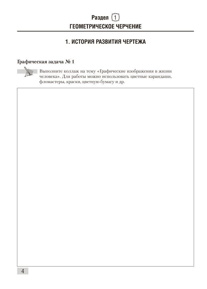Сборник составлен в соответствии с программой и дополняет учебное пособие «Черчение» для 10 класса. Издание включает графические задачи и графические работы для изучения предмета. Использование сборника сокращает и облегчает труд учащегося и учителя при оформлении и проверке работ.