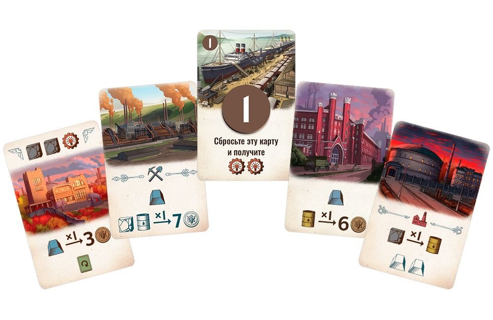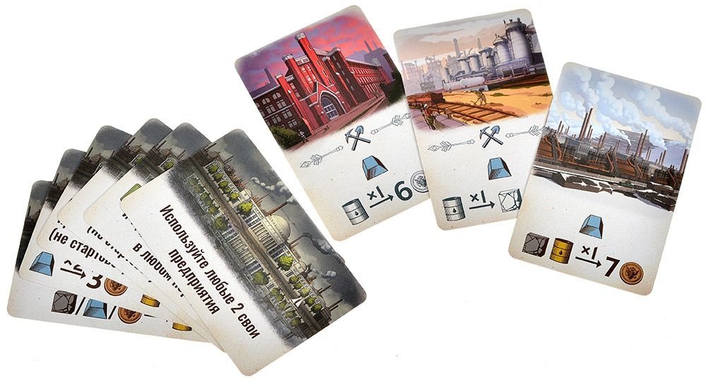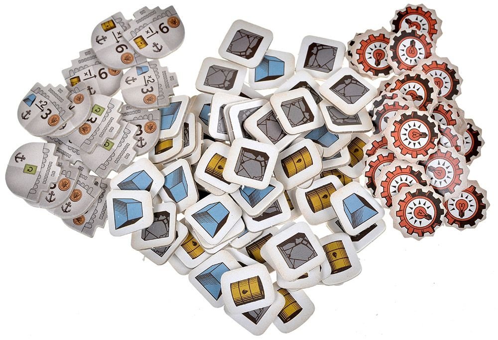 - Новые комплекты игроков и жетоны ресурсов, совместимые с обычной "Индустрией"