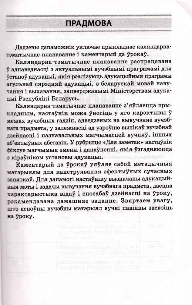 Дадзены дапаможнік уключае прыкладнае каляндарна-тэматычнае планаванне и каметарый да ўрокаў.