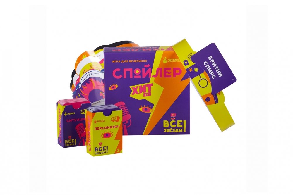 «Звёздная» коллаборация с «Хит FM». Все персонажи на карточках – селебрити, но игра «Спойлер» спустит их с небес на землю. Что Джеки Чан делает на даче? Как Мадонна переживет зомби-апокалипсис? Из-за чего Николас Кейдж ругается с соседями? Включайте фантазию на полную и начинайте вечеринку!