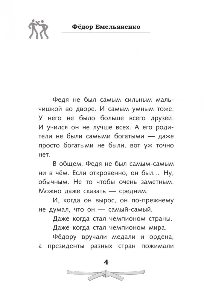 Федя не был самым сильным мальчишкой во дворе. И учился не лучше всех. В общем, не был самым-самым ни в чём. И, когда Федя вырос, он по-прежнему не думал, что он — самый-самый. Даже после того, как стал чемпионом мира и удерживал этот титул более шести лет. Фёдор до сих пор не считает, что он — какой-то особенный. А весь мир — считает.
