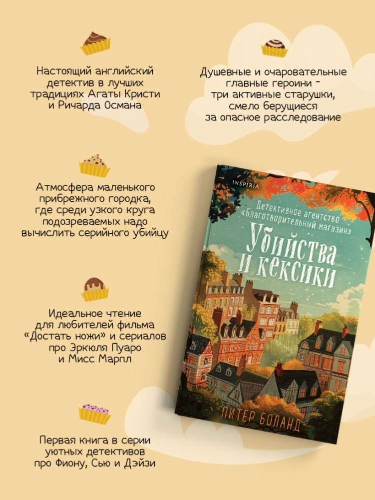 Детективное агентство "Благотворительный магазин" (#1) Фиона, Сью и Дэйзи – три очаровательные дамы на пенсии, которые работают в небольшом благотворительном магазинчике. Однажды размеренный ритм их жизни с кофейными вторниками и прогулками по милым улочкам Саутборна нарушает жестокое убийство любимой клиентки Сары Браун. Не желая мириться с такой несправедливостью, они решают взять расследование в свои руки. Тем более, что появляется новое тело, а полицейские никак не могут сдвинуться с мертвой точки. Вооружившись своими познаниями в детективах и, конечно, чаем с отменными кексами три милые старушки приступают к активным действиям. Так и зарождается Детективное агентство "Благотворительный магазин".