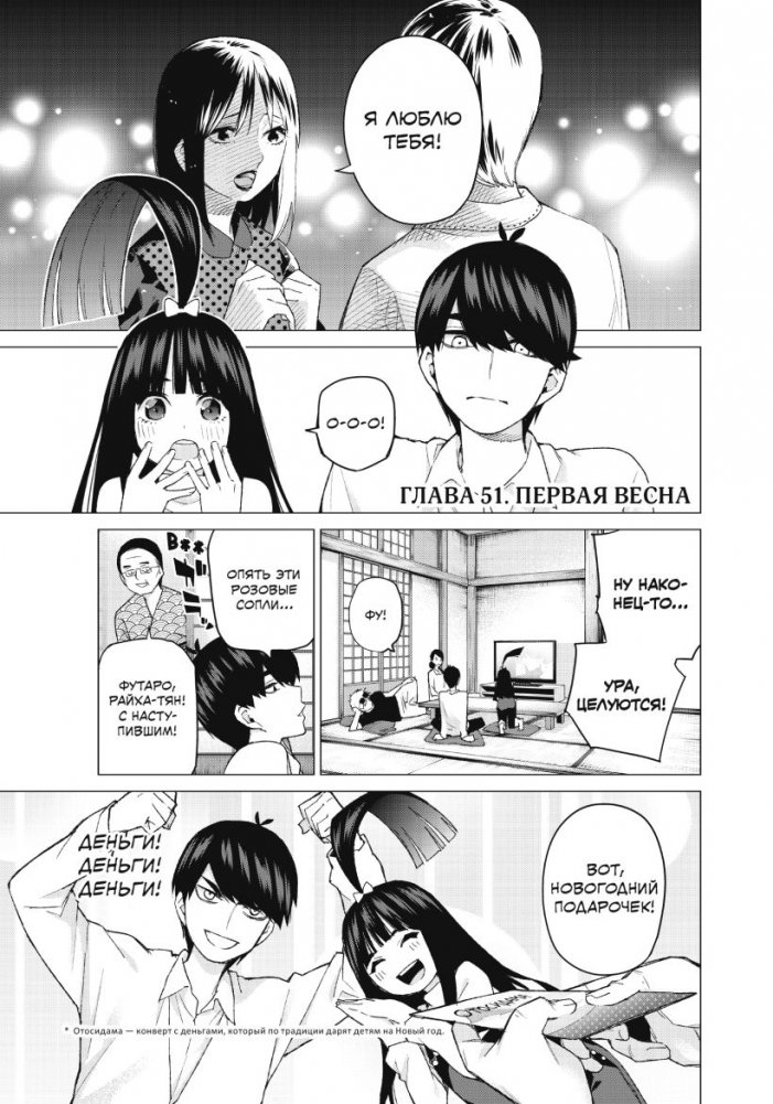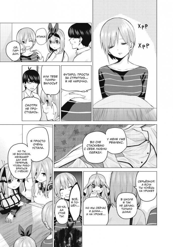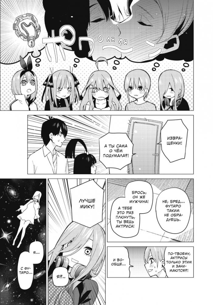 Футаро со скандалом уволился, и отец сестёр Накано запретил ему появляться у них дома. Чтобы продолжать заниматься с любимым репетитором, девочки ушли из дома и стали жить отдельно от отца в дешёвой съёмной квартире. Начало самостоятельной жизни — всегда непростое время… Справятся ли пятерняшки без папиных денег?