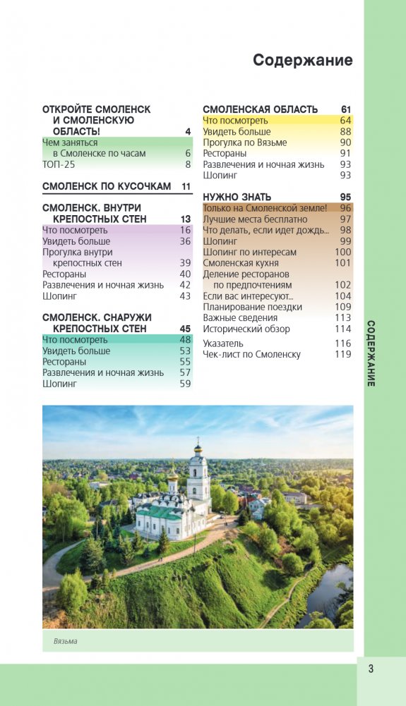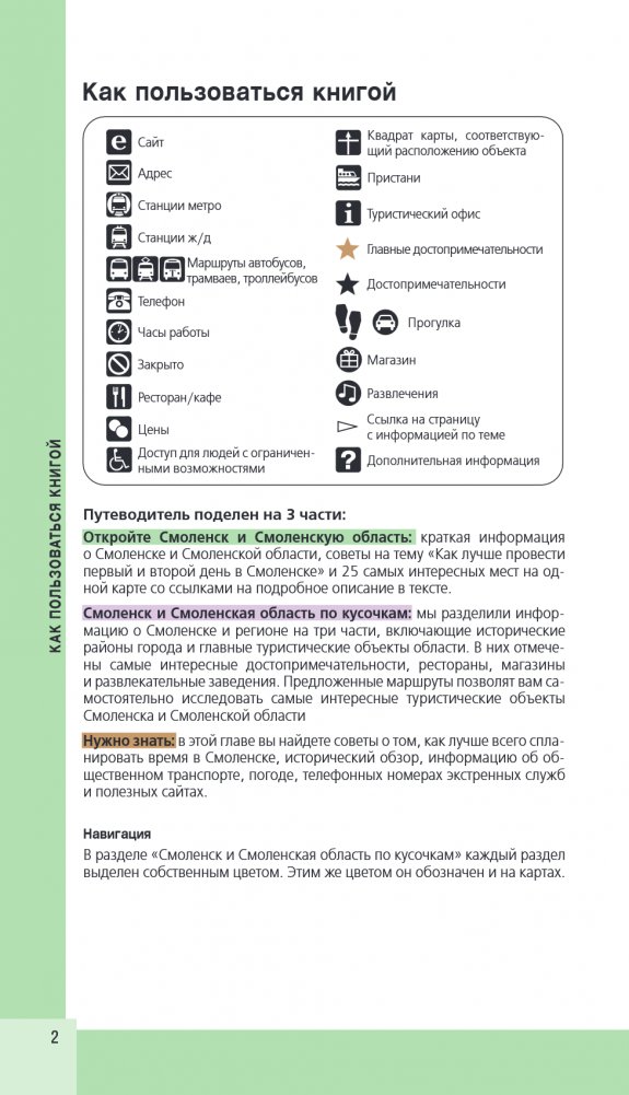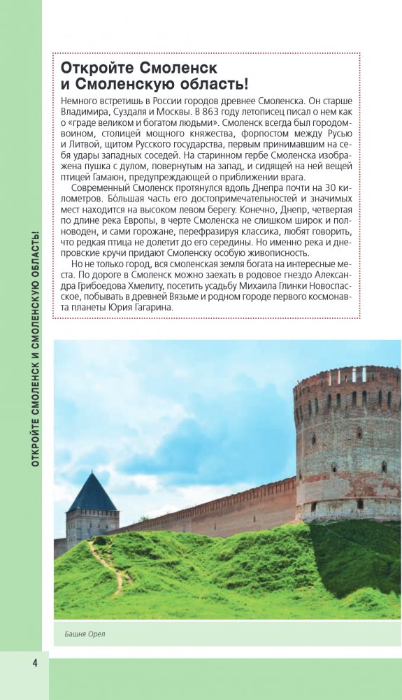 Перед вами путеводитель по Смоленску — одному из самых популярных направлений этого года. Смоленск в истории России известен как "город-щит", который на протяжении многих веков служил надежной защитой Москвы, ограждая ее от посягательств европейских соседей. В нем содержится актуальная и полезная информация о городе, советы, как лучше провести первый и второй дни, куда сходить, а также топ-25 главных достопримечательностей. В путеводителе вы найдете описания самых интересных мест исторического центра Смоленска и Смоленской области, а сориентироваться на местности вам помогут удобные карты, расположенные на страницах гида. Вся необходимая информация о том, где остановиться и попробовать местную кухню, куда пойти и как провести время, всегда доступна с серией путеводителей "Красный гид"!