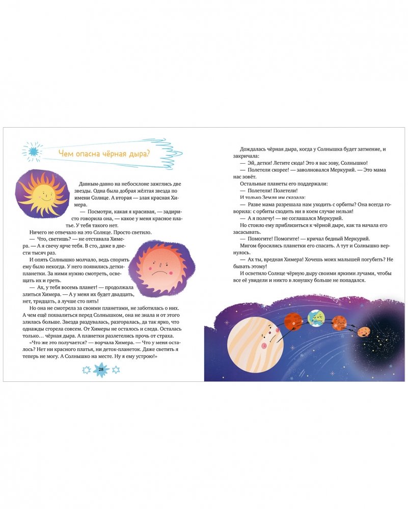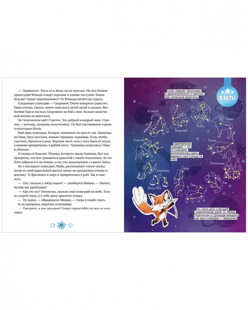 Захватывающее путешествие по галактике вместе с лисенком Почемучкой — 20 историй о тайнах космоса с яркими поясняющими иллюстрациями.