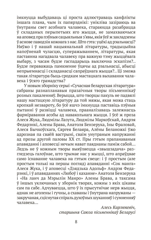 Новая кніга з серыі «Сучасная беларуская літаратура» сабрала прозу пісьменнікаў некалькіх пакаленняў. Невялікія творы прысвечаны невычэрпнай тэме ўзаемаадносін паміж людзьмі і духоўных пошукаў чалавека. Аўтары паказваюць, як па-рознаму можа праяўляцца любоў і як яна ўплывае на лёс людзей. Апавяданні ў прафесійным агучванні можна праслухаць з дапамогай QR-кодаў.