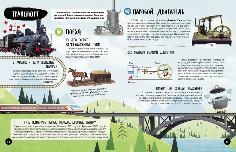 Интересная и познавательная энциклопедия для малыша, из которой он получит первые знания о самых важных изобретениях. Ребёнок узнает много нового оразличных предметах и инструментых познания мира – от бумаги до мобильного телефона. Ещё его ждут ответы на самые необычные вопросы: кто сделал самый прочный клей, где появились первые железные дороги, существуют ли мыслящие машины. А в подарок малыш получит большой постер, который поможет ему ещё лучше познакомиться с историей главных открытий.