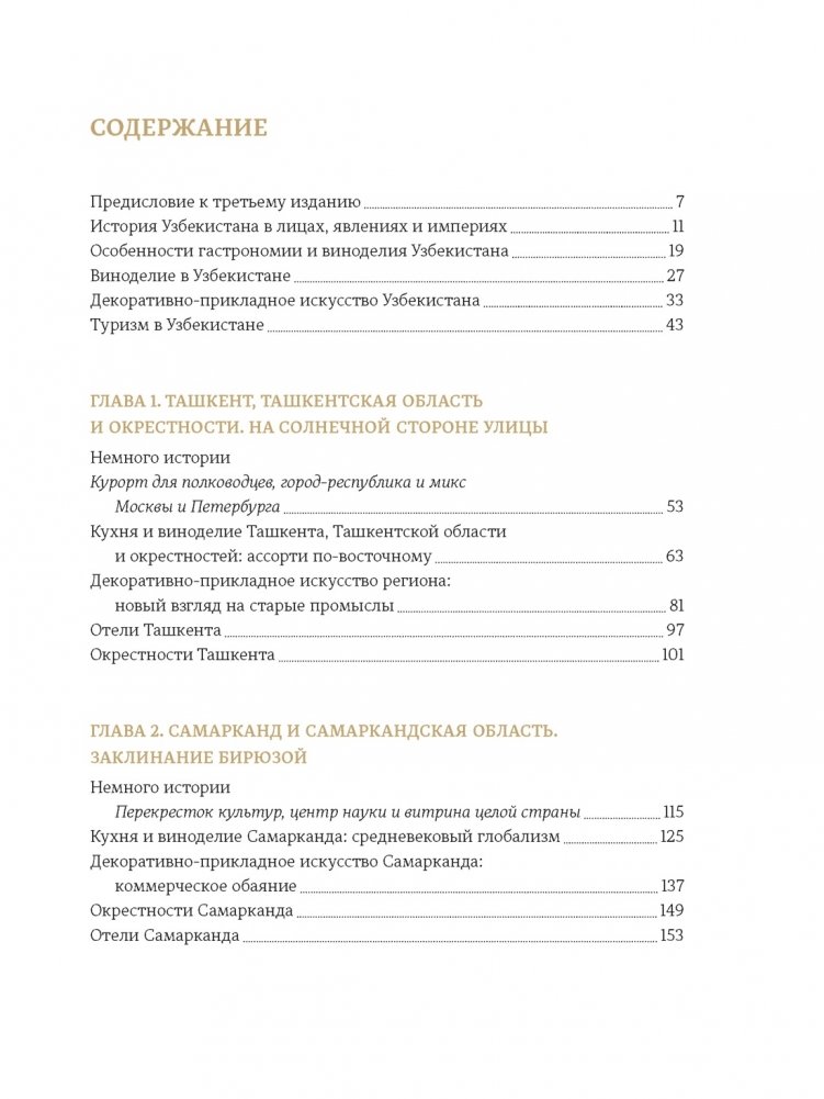 Книга, впервые вышедшая в 2021 году и ставшая российским бестселлером, предоставляет самую актуальную, обновленную в декабре 2024 года информацию об отелях, в которых можно остановиться, ресторанах и чайханах, которые стоит посетить, о еде и вине, которые непременно надо попробовать.