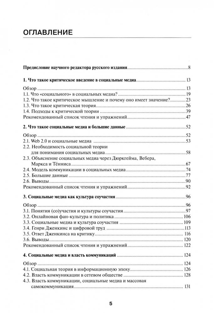 Книга известного медиаисследователя Кристиана Фукса является одним из наиболее востребованных учебных пособий для студентов в сфере социальных наук за рубежом. В ней предлагается критическое переосмысление многих современных феноменов, связанных с цифровой коммуникацией: социальные медиа, партисипаторная культура, цифровой активизм, «большие данные» (big data), платформенная экономика и проч. Учебное пособие призвано заставить студентов задуматься об амбивалентной природе изменений, связанных с цифровыми медиатехнологиями, и научить анализировать эти феномены через призму различных критических теорий медиа: критической левой политической экономии в первую очередь, теорий «надзора» и «контроля», марксизма и др. Каждая глава снабжена подробным набором упражнений и вопросов, по которым удобно строить занятия в аудитории.