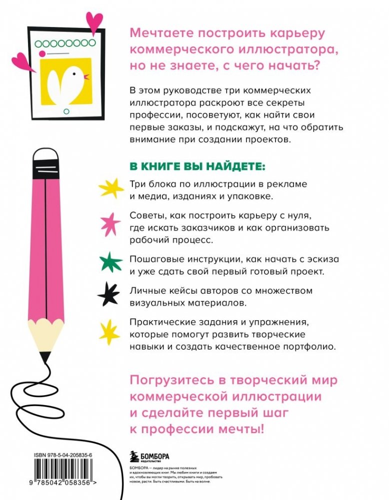 В этом практическом руководстве три профессиональных иллюстратора расскажут о своем творческом пути в коммерческой иллюстрации: от дизайна упаковки и полиграфии к работе с изданиями и медиа. На примере реальных проектов вы познакомитесь с нюансами профессии, изучите возможные направления карьерного развития и с помощью упражнений и советов создадите портфолио мечты. Книга идеально подойдет как для начинающих иллюстраторов, так и для тех, кто хочет сменить сферу деятельности и выбирает новую профессию, а также для студентов профильных направлений.