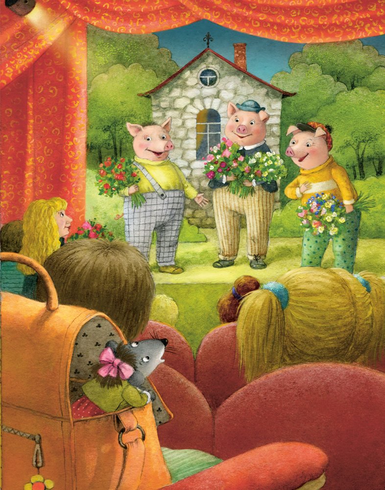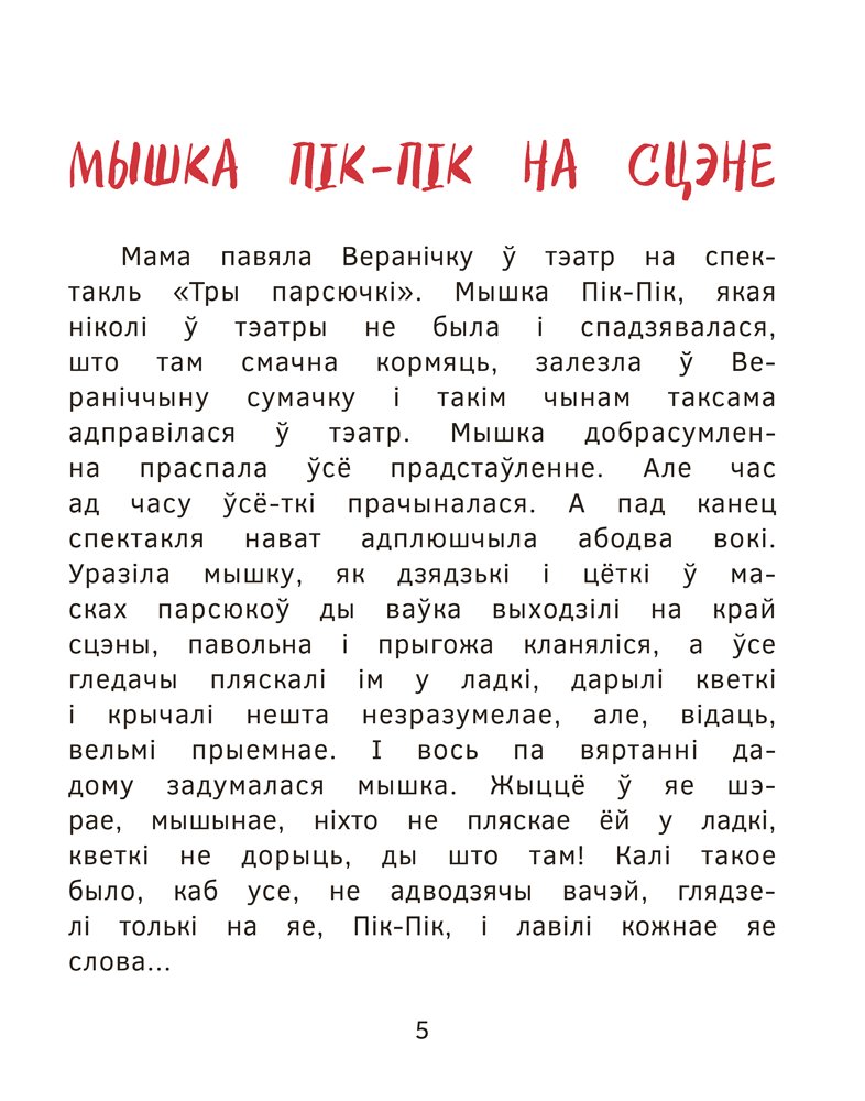 У кнізе чытачы разам з тоўсценькай, лянівай, але абаяльнай мышкай адправяцца ў вёску па прысмакі, у падарожжа па бананы і нават у касмічны палёт, а таксама згуляюць у займальную гульню.