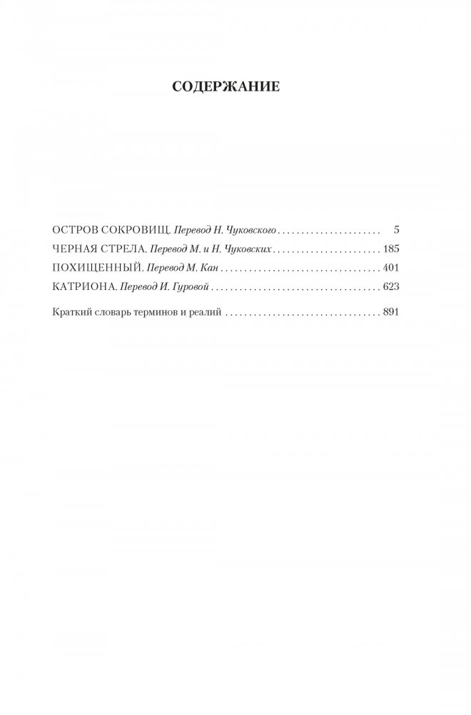 В настоящем издании публикуются романы «Остров Сокровищ», «Черная стрела» и дилогия о приключениях Дэвида Бэлфура — «Похищенный» и «Катриона». В оформлении книги использованы цветные и черно-белые иллюстрации Джорджа Вэриэна, Чарлза Эдмунда Брока, Уильяма Хола, Ньюэлла Уайета и др.