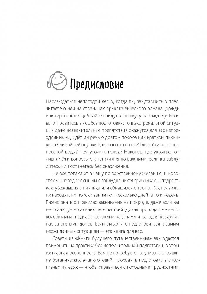 «Книга будущего путешественника» — это увлекательнейшая энциклопедия знаний и умений, которые будут полезны и на семейном пикнике, и в настоящем походе. Она содержит четыре больших части: «Костер», «Жажда», «Голод» и «Убежище». Каждая из них описывает три уровня сложностей, которые ждут всякого путешественника.