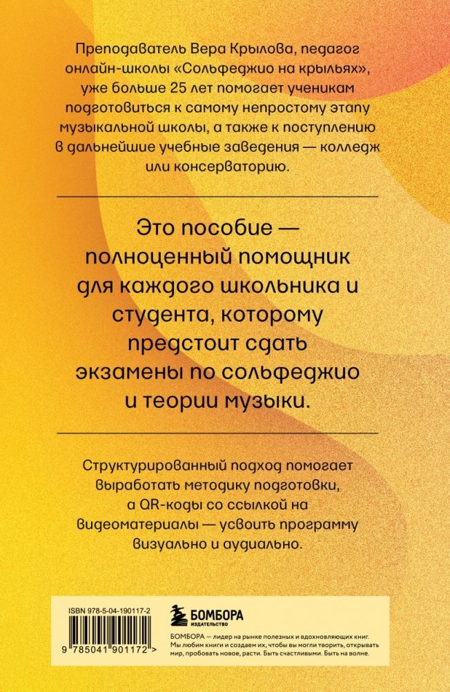 Мечтаете научиться понимать музыку, но не знаете с чего начать? Или уже являетесь профессионалом и хотите вспомнить основы? Книга опытного педагога со стажем около 30 лет, а также кандидата искусствоведения Веры Крыловой поможет вам в этом! Внутри вы найдете материалы на различные темы: от лада и тональности до интервалов и аккордов. Это пособие поможет вам развить свой музыкальный слух и углубить уже имеющиеся знания при помощи видеоуроков, доступным по QR-кодам.