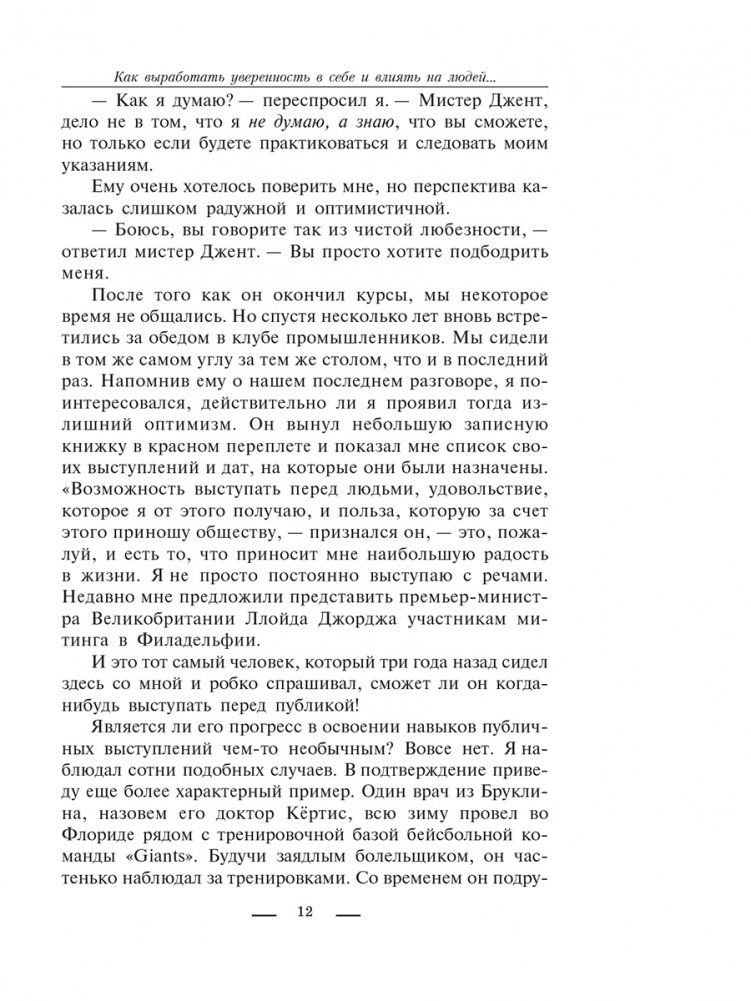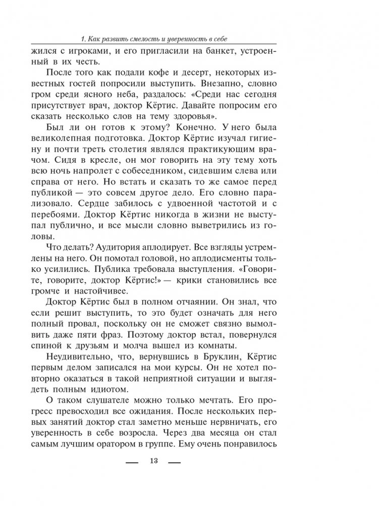 Вы не задумывались, почему многие умные и интеллигентные люди, которые не испытывают трудностей в разговорах с глазу на глаз, вдруг словно проглатывают язык и дрожат от страха, оказавшись даже перед самой немногочисленной аудиторией? На самом деле этот страх довольно легко преодолеть. Это книга для всех, кто стремится быть впереди. На каждой странице великий Дейл Карнеги показывает, как его оригинальная методика, позволяющая привлекать и удерживать внимание слушателей, будет помогать вам во всех областях жизни. Прочитав руководство, вы научитесь: