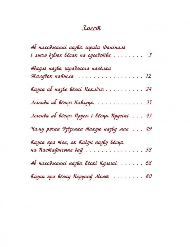 У кнізе вядомага беларускага пісьменніка Генадзя Аўласенкі чытачы знойдуць не зусім звычайныя тапанімічныя казкі. У іх аўтар, зыходзячы са сваёй уласнай фантазіі, спрабуе адказаць на пытанне, якім чынам той ці іншы населены пункт ці геаграфічны аб’ект нашай краіны атрымаў сваю назву. Мэта выдання — разбудзіць цікавасць чытачоў да гістарычнай спадчыны роднага краю.
