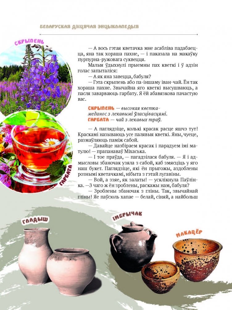 У кнізе «Едзем да бабулі ў вёску» ў апавядальнай форме падаецца інфармацыя аб асаблівасцях жыцця беларусаў у вёсцы ў мінулым. Разам з героямі кнігі дзяўчынкай Паўлінкай і хлопчыкам Міхаськам чытач даведаецца аб традыцыйных занятках сялян, іх абрадах, прыладах працы, побыце, прадметах дэкаратыўна-прыкладнога мастацтва, раслінах і жывёлах, нацыянальных стравах, святах. Выданне дапоўнена цікавымі пытаннямі і заданнямі, творамі мастацкай літаратуры, каляровымі ілюстрацыямі, значэнне незнаёмых слоў больш падрабязна раскрыта ў тлумачальным слоўніку.
