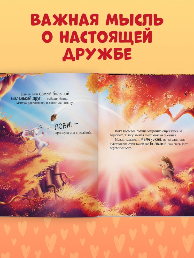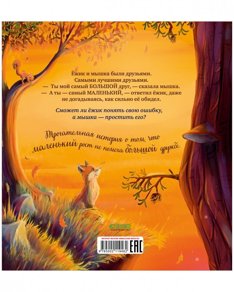 Ёжик и мышка были друзьями. Самыми лучшими друзьями. «Ты мой самый БОЛЬШОЙ друг», — сказала мышка. «А ты — самый МАЛЕНЬКИЙ», — ответил ёжик, даже не догадываясь, как сильно её обидел.