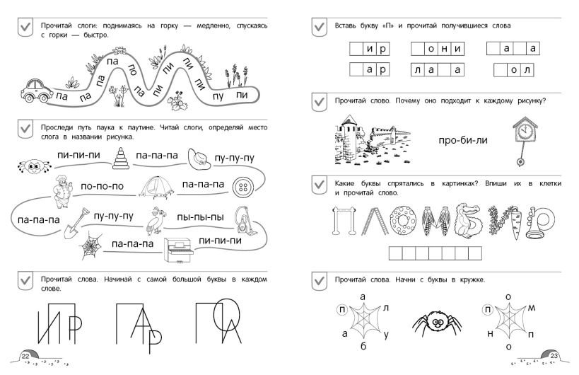 Чтение — очень сложный для ребенка процесс и лучше делать это постепенно, пошагово. Цель нашего пособия — подготовить ребёнка к обучению чтению: сформировать навык слогового чтения, потренироваться в написании печатные букв, развить мелкую моторику. Книга второго уровня включает в себя 23 занятия. Выполняя увлекательные задания, ребёнок повторит звуки и буквы, потренируется соединять буквы в слоги, читать слова по слогам и делить их на слоги, обогатит словарный запас, разовьёт фонематический слух, связную речь, внимание, сможет подготовить руку к письму. Адресовано любознательным дошкольникам, их родителям и воспитателям для занятий дома или в детском саду.