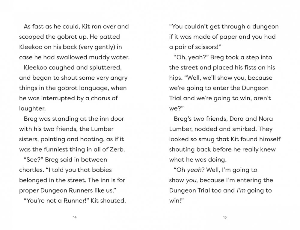 But when a space opens up for a new team in the Dungeon Running League, Kit doesn't want to miss this chance to try out! With his new friends Sandy and Thorn, they're ready to take on anything—mazes, puzzles, monsters, treasure, and most of all adventure!