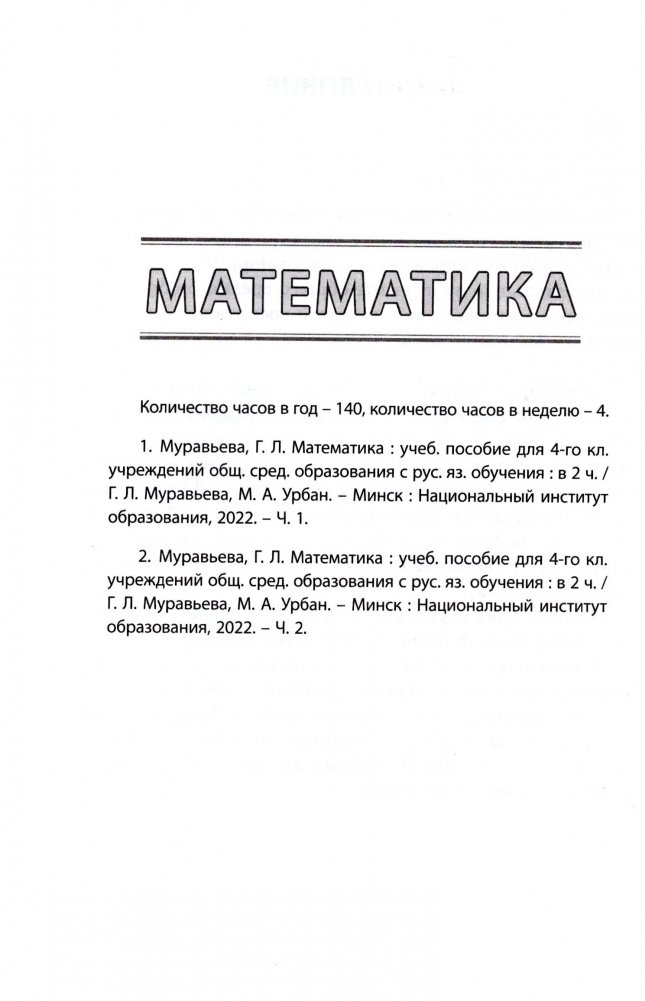 Начальная школа. Математика. Чалавек і свет. Мая Радзіма – Беларусь. Трудовое обучение. Основы безопасности жизнедеятельности. 4 класс. Примерное календарно-тематическое планирование. 2025/2026 учебный год
