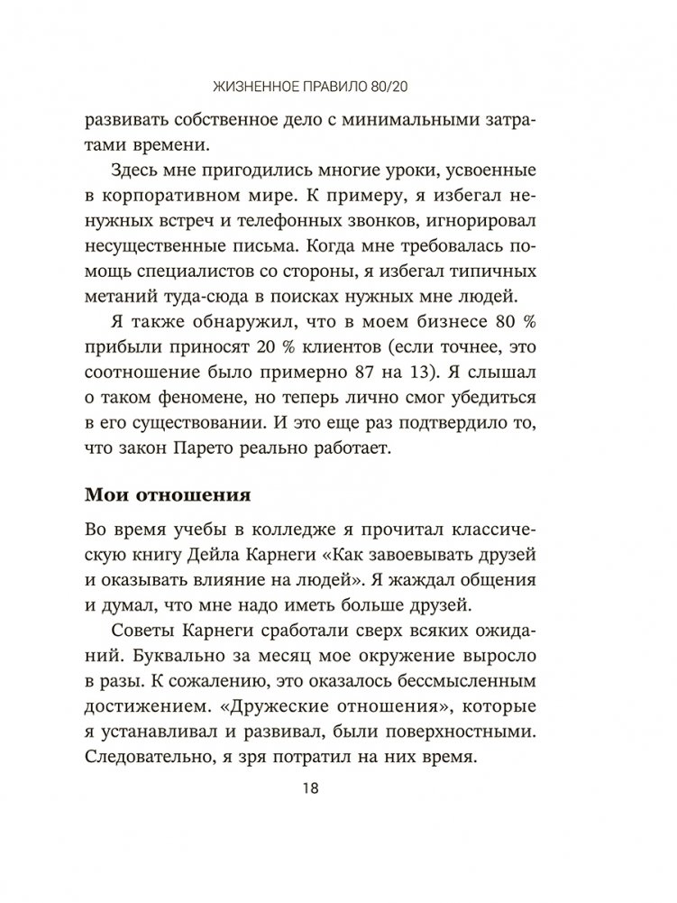 Вот о чем книга «Жизненное правило 80/20». Она покажет вам, как получать выдающиеся результаты с минимальными затратами времени и сил. Из нее вы также узнаете: