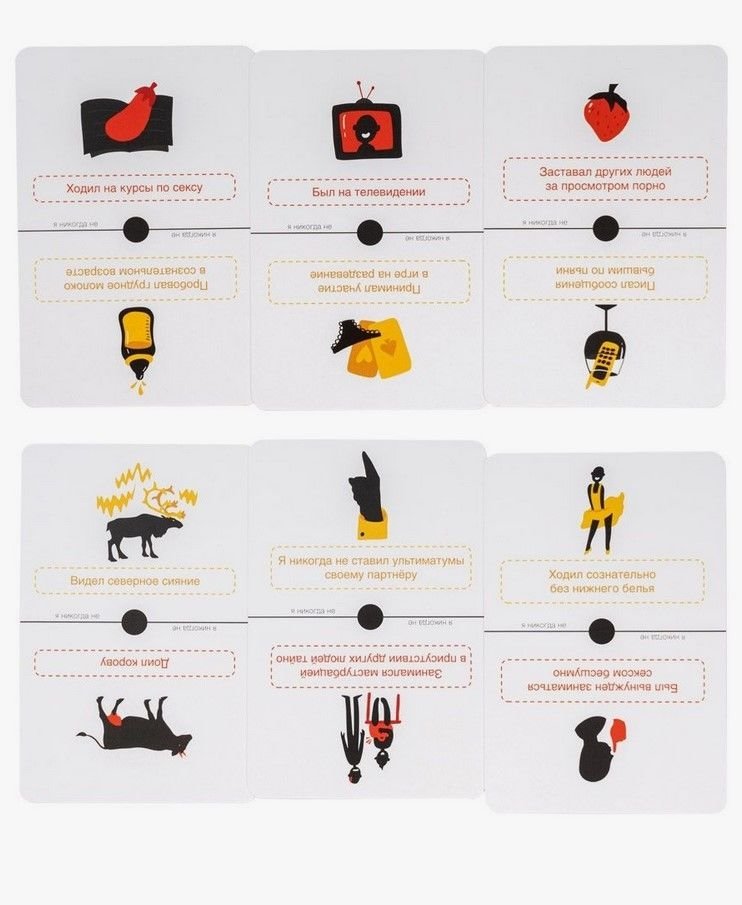 "Я никогда не работал на работе, которую ненавидел" – ооо, тут, похоже, придётся всем присутствующим пригубить! И, кстати, будьте готовы к тому, что многие вопросы окажутся весьма пикантными, именно поэтому категорически не рекомендуется показывать эту игру детям до восемнадцати лет!
