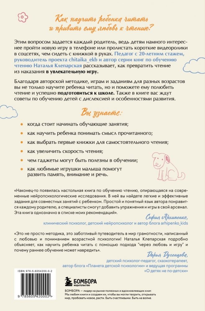 Как научить ребенка читать и при этом привить ему интерес к чтению? Педагог с 20-летним стажем, руководитель проекта chitaika_ekb и автор серии книг по обучению чтению, Наталья Клепарская рассказывает, как превратить чтение из наказания в увлекательную игру. Благодаря авторской методике, играм и заданиям для разных возрастов вы не только научите ребенка читать, но и поможете ему полюбить чтение и успешно подготовиться к школе. Также в книге вас ждут советы по обучению детей с дислексией и другими особенностями развития.