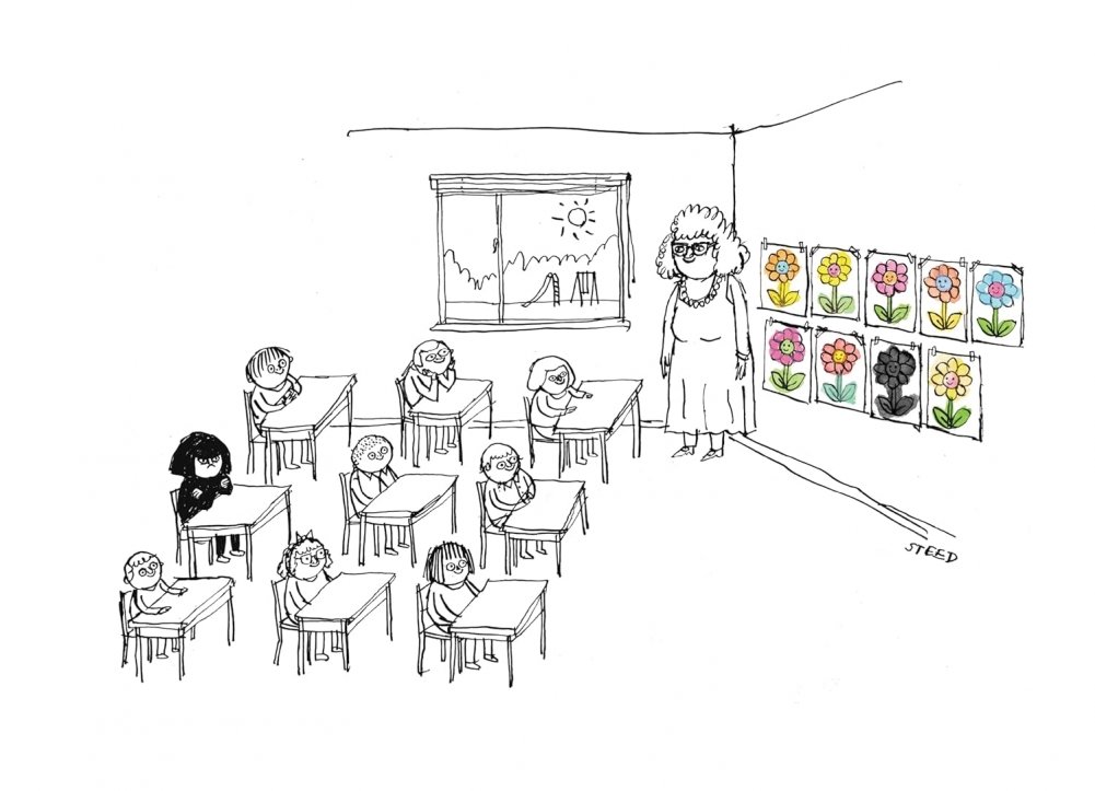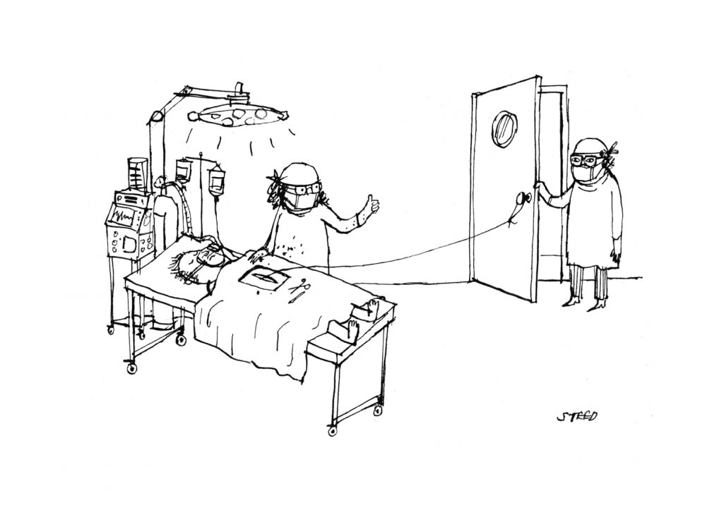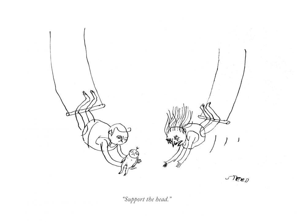 Once in generation, a distinctly new perspective emerges from the pages of The New Yorker. In our times, that perspective belongs to Ed Steed. Steeped in the classic formalist tradition of the single-panel gag, Steed possesses a shocking and macabre talent for drawings guaranteed to make even the most composed of casual readers laugh out loud. At times reminiscent of Charles Addams, George Booth, William Steig, Saul Steinberg, and Edward Gorey, the artist defies the blasé, urbanite’s worldview of the magazine in which his comics appear.