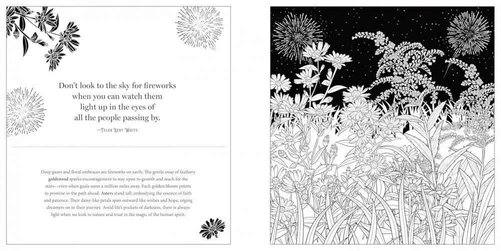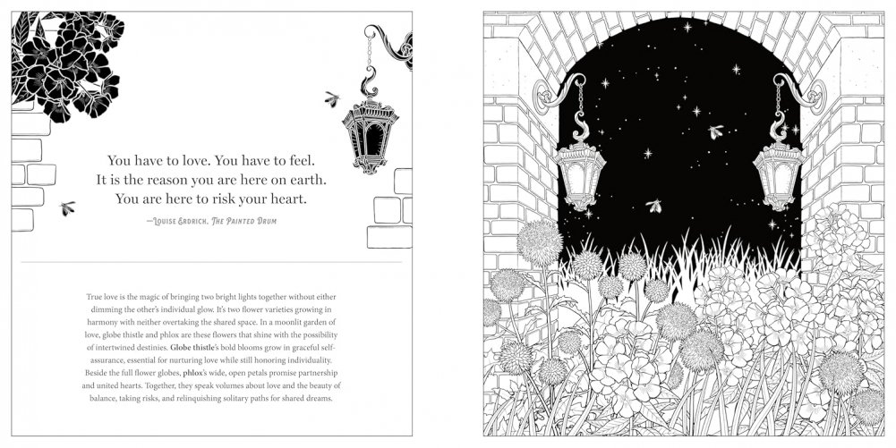Wander into a garden that awakens under the stars, where each luminous petal reveals secrets, dreams, and desires beneath the velvet sky. Floriographic: Midnight Garden invites you on a coloring journey into the romantic realm of floral symbolism. Within these pages, you’ll discover gorgeous scenes in which nocturnal blossoms become storytellers. Let moonflowers help you to savor the enchantment of evening. Find peace in moonshine yarrow and gentle night rhythms. Reconnect with the magic of life after dark through more than 45 hand-drawn illustrations.