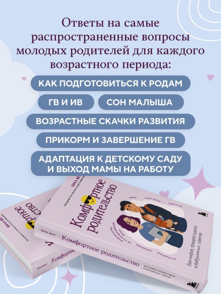 Когда рождается малыш, жизнь партнеров сильно меняется и возникает множество вопросов: как не потерять себя и друг друга в родительстве? Можно ли отлучаться из дома и не прекращать ГВ? Как оставаться на волне своих увлечений и интересов? Вика Верт — мама двух дочерей, консультант по грудному вскармливанию, создательница блога и онлайн-школы для мам Wikimilk делится лайфхаками и дает экспертные ответы на большинство вопросов, которые возникают у родителей с момента беременности и до двух лет малыша. Эта книга — помощник для молодых родителей. Ее цель — поддержать современную маму, проинформировать, рассказать о рисках, плюсах и минусах, и помочь ей сделать правильный выбор.