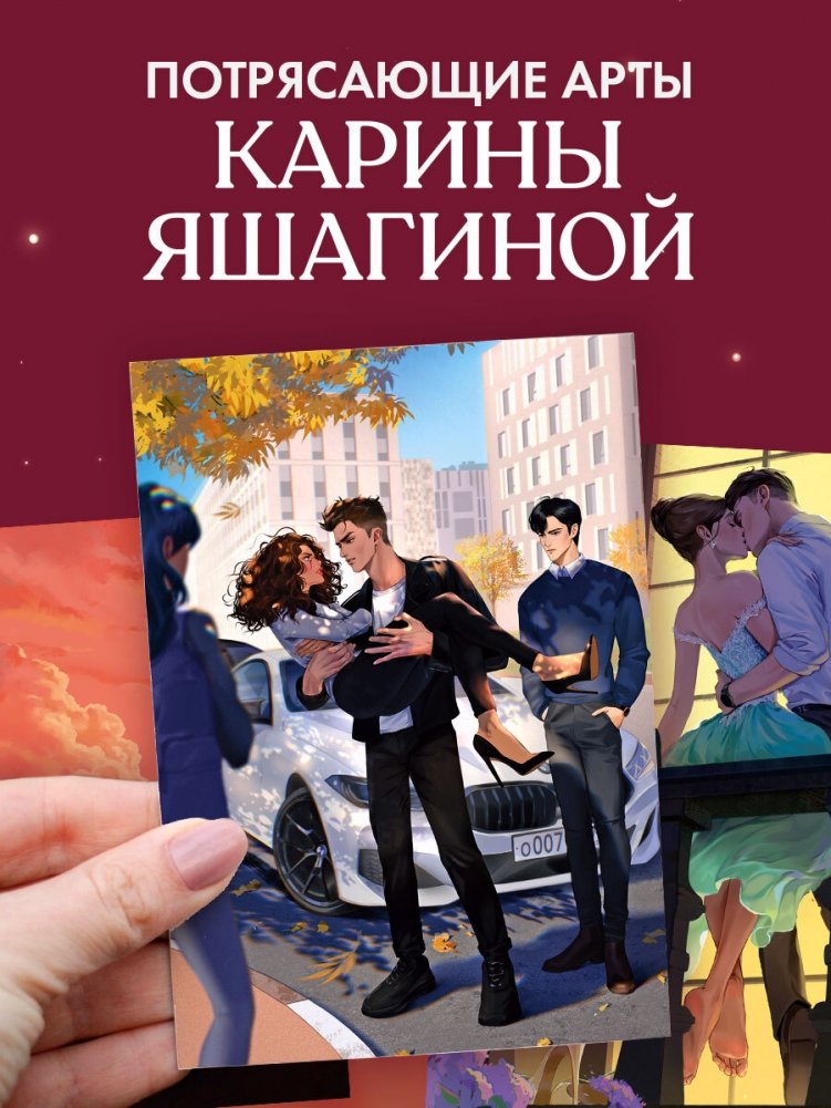Набор из 15 открыток с артами Карины Яшагиной — настоящая находка для тех, кто хочет продлить удовольствие от прочитанного, добавить кусочек книжного мира в свой интерьер или просто порадовать близких. Комплект станет изящным украшением книжной полки или рабочего стола, создавая атмосферу любимой истории.