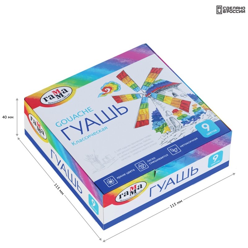 Гуашь Гамма "Классическая", 09 цветов, 20мл, картон. упаковка