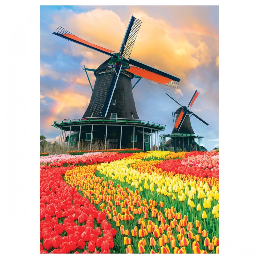 Пазл «Ветряные мельницы» из 1000 элементов станет отличным способом весело провести время. Картинка имеет вертикальную ориентацию, в собранном виде размер − 67*48 см.